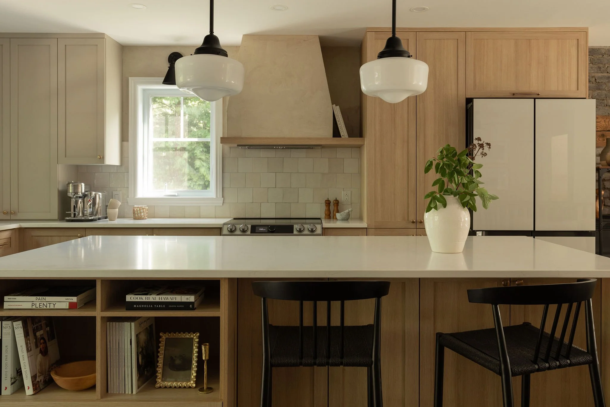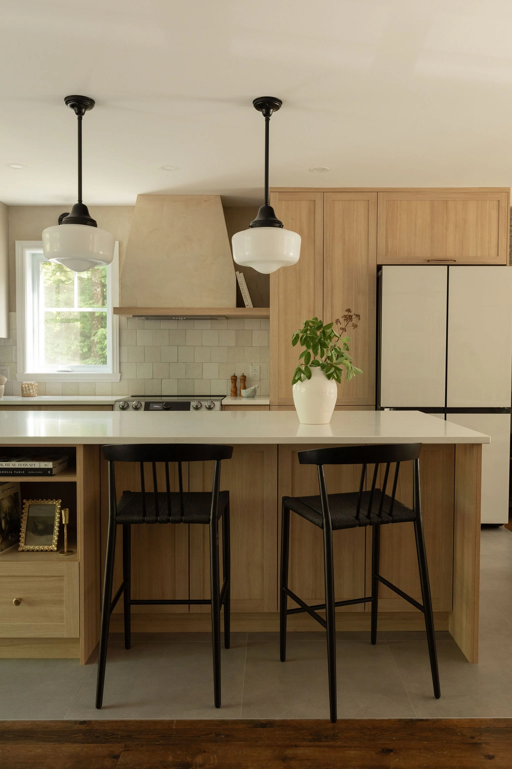 Transformation complète de notre cuisine et salle à manger, maintenant réinventées dans un style réconfortant et indémodable avec une richesse de textures. En supprimant un mur, nous avons créé une ergonomie supérieure, offrant un espace ouvert et accueillant parfait pour des moments de convivialité. 🤍