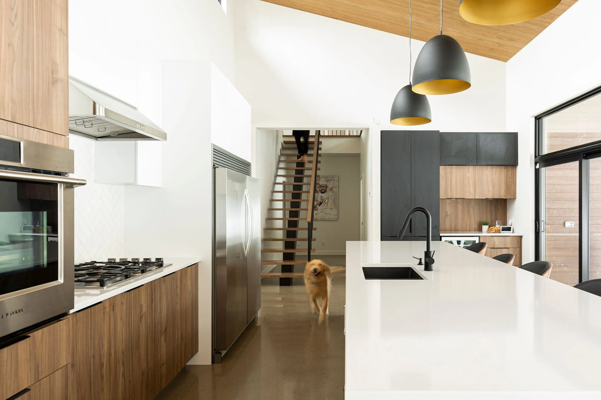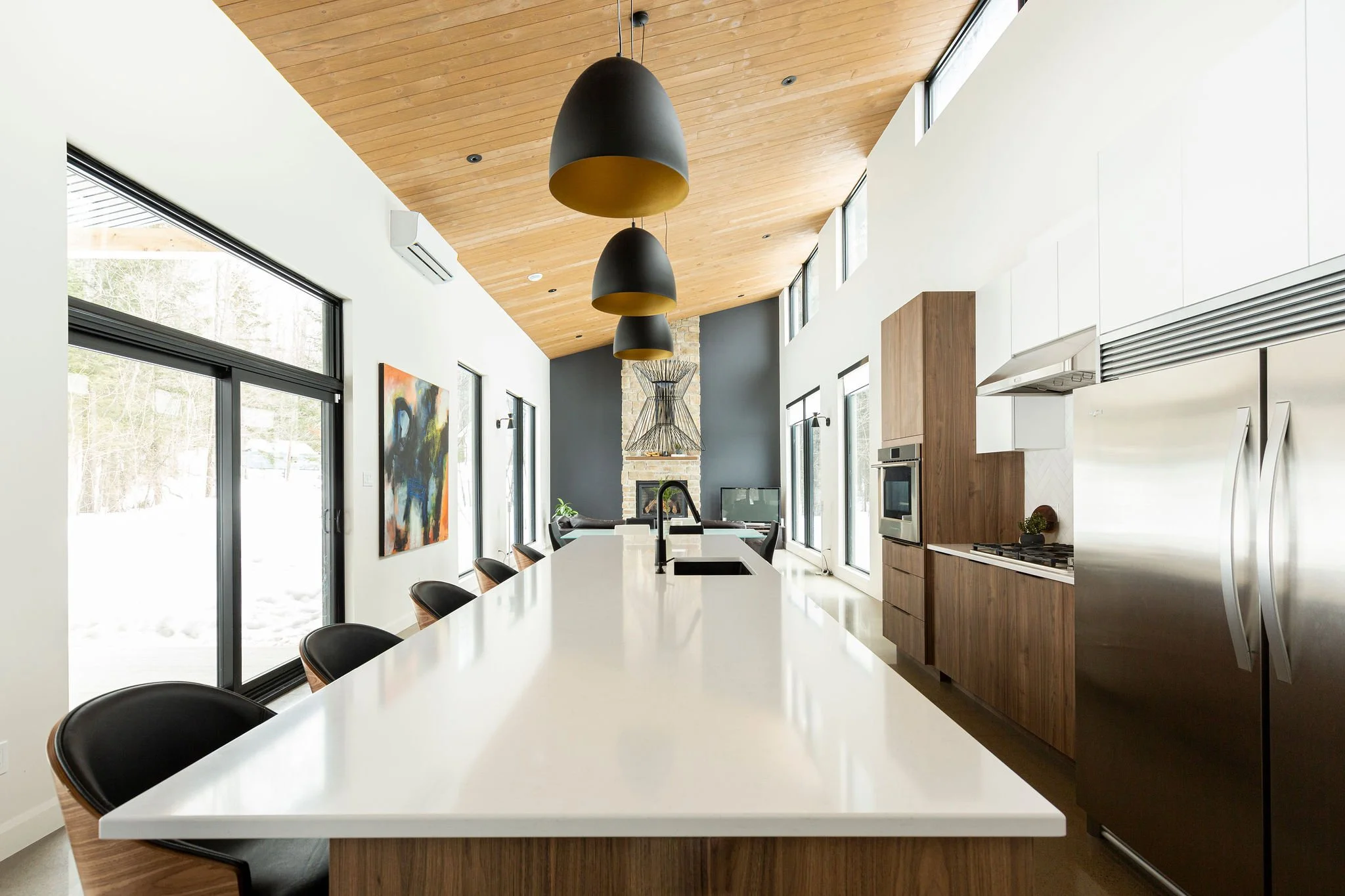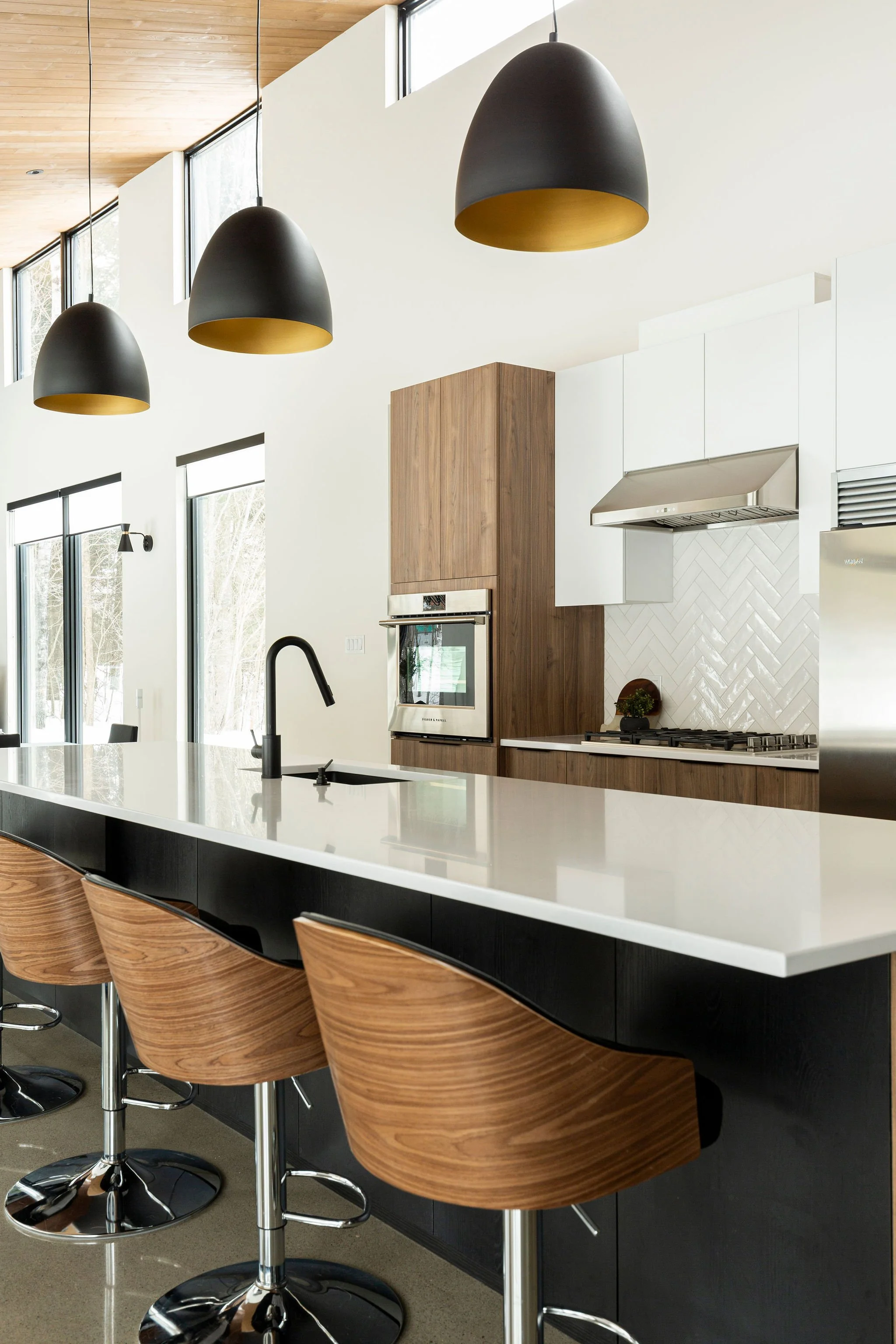 EXPÉRIENCEL’aménagement d’une grande partie de l’aire ouverte et de la salle de bain principale de cette magnifique résidence signée Leguë Architecture était des plus agréables à collaborer. Ce projet aux lignes droites, épurées et modernes est spectaculaire. Nous avons misé sur l’architecture de la maison qui apportait beaucoup de luminosité et de grandeur. Nous avons osé les couleurs plus sombres pour certaines parties du mobilier. Le minimalisme est définitivement à l’honneur pour ce projet.